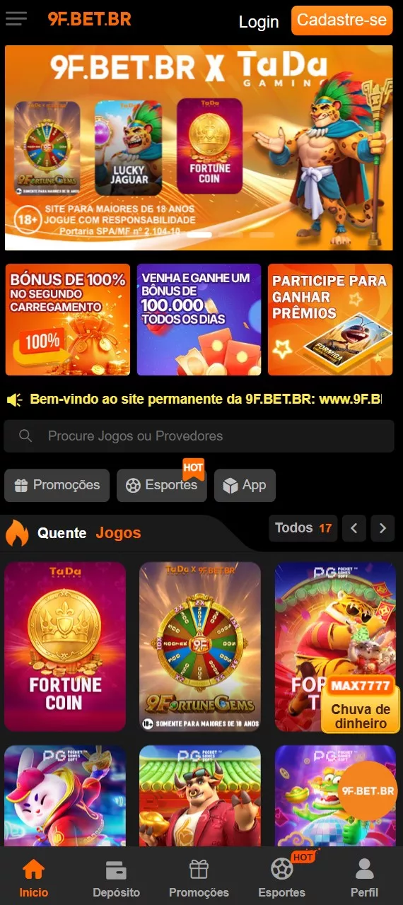 Para usuários brasileiros, a 9F oferece uma enorme Uma variedade de esportes e jogos de cassino. Ligas mundiais e clássicos brasileiros, odds altas, mercados diversificados e emoção ao vivo em tempo real!